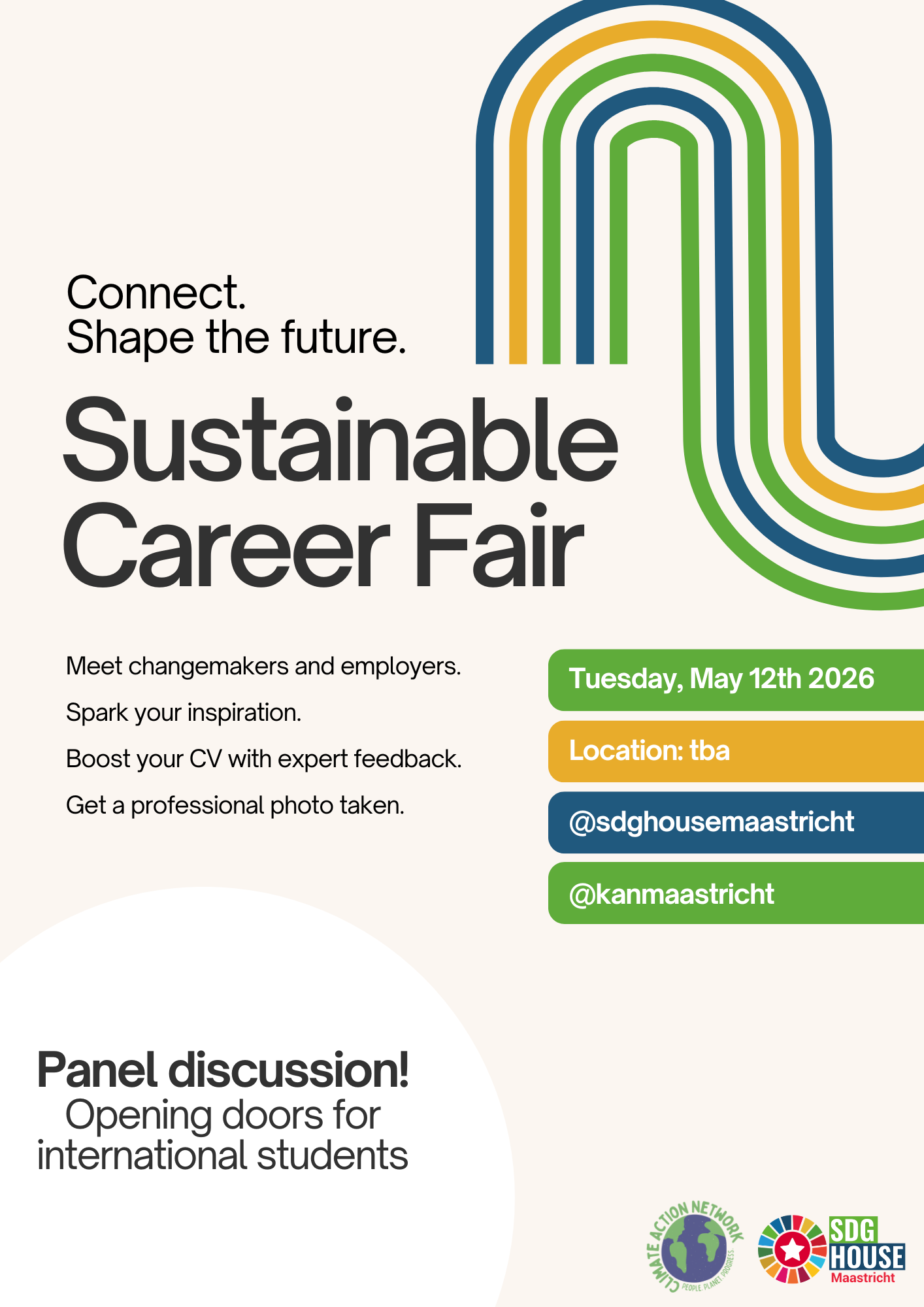 The first Sustainable Career Fair connects students, graduates and refugees with innovative businesses working towards a sustainable future. On 12 May 2026, SDG House Maastricht and […]