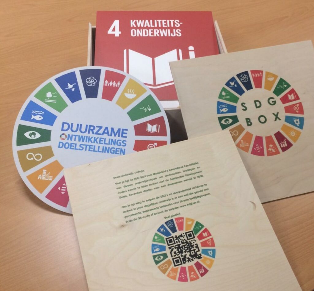 De SDG Box is een hulpmiddel om leerlingen en docenten op een laagdrempelige manier kennis te laten maken met duurzaamheidseducatie en burgerschap. Veel scholen en scholenkoepels hebben duurzaamheid in het beleidsplan verankerd staan. In de praktijk blijkt het een uitdaging om daar handen en voeten aan te geven.